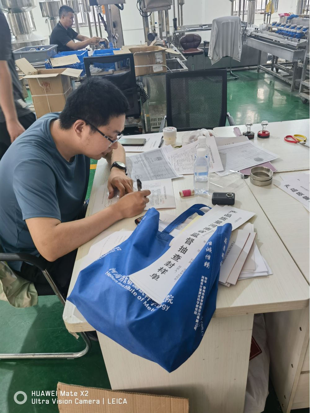 ?2023年 6月14日河南省市場監(jiān)督局委托河南省計量測試科學研究院付江紅、王偉鵬到商丘市清源儀表有限公司,對旋翼式冷水表、IC卡智能水表、電子遠傳水表進行年度定期抽檢工作。在商丘市清源儀表有限公司的積極配合下,保證抽樣的隨機性、真實性。在日常生產(chǎn)中,商丘市清源儀表有限公司嚴把質量關,做到每只出廠水表都符合國家質量要求。